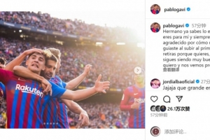 加維社媒曬出與阿爾巴的合照,并寫道:“兄弟,你已經(jīng)知道你對我來說有多么特別,在我升入一線隊的時候,你的歡迎和引導(dǎo)讓我永遠心懷感激。”