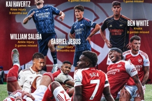 體育資訊9月23日訊 有博主制作阿森納的傷病圖,介紹了阿森納本賽季的傷病情況。