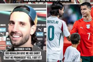 比賽結(jié)束后,索博斯洛伊接受采訪,被問及C羅有沒有遵守諾言把球衣給他,索博斯洛伊開心地回答道:“是的,我拿到了!”
