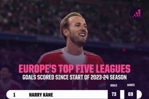 體育資訊10月16日訊 根據(jù)OPTA的統(tǒng)計(jì),自2023-24賽季以來,凱恩是五大聯(lián)賽進(jìn)球最多的球員,他69場聯(lián)賽打進(jìn)73球。