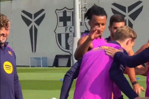 體育資訊10月16日訊 巴薩球員在訓(xùn)練時列隊歡迎德容和費爾明,并對他們致以拍頭禮進(jìn)行祝賀。
