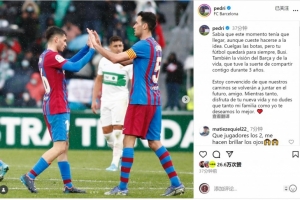 佩德里社媒曬出與布斯克茨在巴薩的合照,配文:“我知道這一刻終會(huì)到來(lái),盡管接受這個(gè)現(xiàn)實(shí)并不容易。你即將掛靴,布斯克茨,但你的足球?qū)⒂肋h(yuǎn)留存,還有你對(duì)巴薩和生活的見解,我很幸運(yùn)能與你共度三年時(shí)光?!?/p>