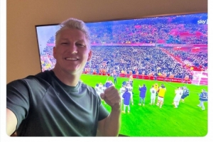 曼聯(lián)舊將、德國足壇名宿施魏因斯泰格通過電視觀看雙紅會,賽后他曬出自己在電視機(jī)前的照片,配文:“簡直太美妙了!加油曼聯(lián),多么精彩的比賽!”