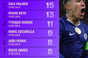 體育資訊10月23日訊 數(shù)據(jù)網(wǎng)站Squawka盤點(diǎn)了2025年切爾西球員各項賽事參與進(jìn)球榜單,具體如下(進(jìn)球+助攻):