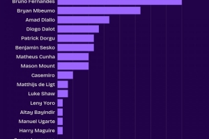 體育資訊10月31日訊 數據機構squakwa統(tǒng)計了本賽季曼聯隊內英超創(chuàng)造機會情況,B費仍獨自領跑。