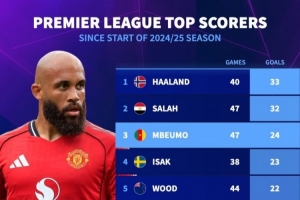 體育資訊10月31日訊 《轉(zhuǎn)會(huì)市場(chǎng)》統(tǒng)計(jì)了上賽季至今的英超射手榜,哈蘭德已經(jīng)反超薩拉赫居首。