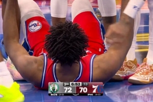 GIF-懷特對(duì)恩比德犯規(guī),隨后被換下