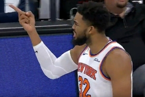 GIF-唐斯轉(zhuǎn)身打史密斯拋投命中,裁判吹進攻犯規(guī),尼克斯挑戰(zhàn)成功變2+1