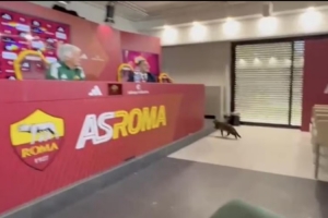 《羅馬體育報》曬出的視頻顯示,當(dāng)加斯佩里尼回答記者提問時,一只貓闖進(jìn)了新聞發(fā)布廳。這只貓咪恰好就在加斯佩里尼發(fā)言的講臺附近開始喵喵叫,教練關(guān)于本賽季陣容可能調(diào)整的論述被貓叫聲打斷。