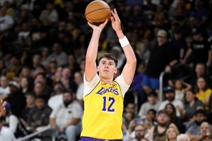 仿佛是為了鼓勵他,最后湖人收尾:里夫斯、盧卡、拉拉維亞、布朗尼、海耶斯。維金斯中圈施壓,里夫斯投進中投;之后拉拉維亞內(nèi)切空接拉開8分,完成里夫斯第10次助攻,拉拉維亞找盧卡拋射,自己點進前場籃板,事實上鎖局。