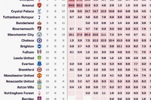 體育資訊9月29日訊 Opta更新了超級計(jì)算機(jī)預(yù)測的英超各隊(duì)奪冠概率,利物浦46.5%仍居首位,阿森納逆轉(zhuǎn)紐卡之后升至34.6%,排名次席。