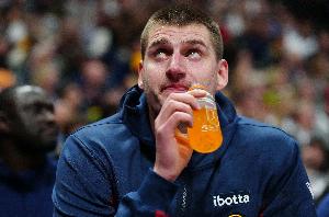 GIF-約基奇場(chǎng)邊喝飲料