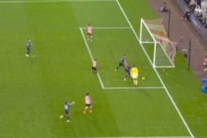 比賽第85分鐘,桑德蘭進(jìn)攻,拉亞撲出布羅比的近距離射門后“脫線”沒能找到足球,隨后在加布里埃爾的提醒下將球沒收!