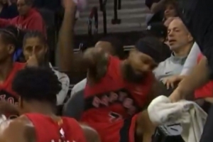 “很多人都認(rèn)為他應(yīng)該站起來(lái)道歉。我理解他的沮喪,他在比賽中摔倒得很尷尬,而且那是一場(chǎng)艱難的比賽,他們有很多失誤,最終沒(méi)能贏得比賽。但我不認(rèn)為這是正確的回應(yīng)方式。有人說(shuō)他像三歲小孩一樣,確實(shí)如此,這種事情經(jīng)常發(fā)生在有小孩的家庭里。但我認(rèn)為這不是合適的反應(yīng)。他應(yīng)該對(duì)此道歉,但他沒(méi)有這樣做,沒(méi)有任何反應(yīng)。我不知道他當(dāng)時(shí)是怎么想的,但作為一個(gè)普通人,我認(rèn)為他應(yīng)該有所表示。他不應(yīng)該坐在那里看著大家清理,尤其是當(dāng)水濺到隊(duì)友臉上時(shí)。他應(yīng)該幫助清理,而不是讓別人的生活變得更加困難。也許這是因?yàn)樗浅?jí)富豪,覺(jué)得這些人理應(yīng)為他服務(wù)。但我們不應(yīng)該輕易下結(jié)論。他看起來(lái)非常沮喪,可能只是心情不好而已?!盌onnie Freeman表示。
