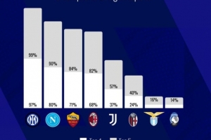 根據(jù)Footballrankings的預(yù)測,意甲有28%的概率下賽季五隊(duì)征戰(zhàn)歐冠。
