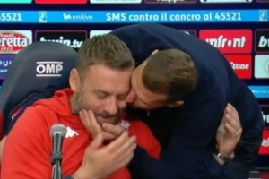賽后德羅西舉行了新聞發(fā)布會,而就在他接受采訪時,佛羅倫薩前鋒哲科進入發(fā)布會現(xiàn)場,并且抱住德羅西連親幾口,哲科還說“祝你好運”。哲科和德羅西過去曾是羅馬隊友,兩人關(guān)系很好,盡管這次作為對手相遇,但哲科還是以這種方式和德羅西打招呼。