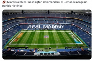皇馬官方社媒曬出伯納烏球場(chǎng)準(zhǔn)備就緒的照片,配文:“邁阿密海豚vs華盛頓指揮官,伯納烏球場(chǎng)將迎來(lái)一場(chǎng)歷史性的比賽。”