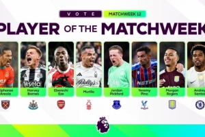 體育資訊11月25日訊 英超第12輪聯(lián)賽已經完賽,英超官方也列出了本輪最佳球員的8人候選名單: