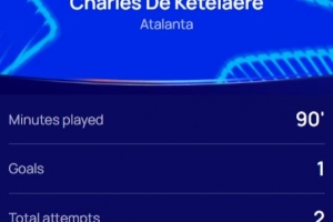 本場比賽德凱特拉雷傳射建功,2次射門,跑動(dòng)距離10.2km。賽后他也當(dāng)選歐冠官方評選出的本場最佳球員。
