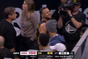 GIF-庫里有點沮喪 一瘸一拐提前離場