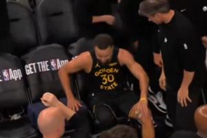 GIF-庫(kù)里暫停時(shí)坐不住 坐下突然彈起