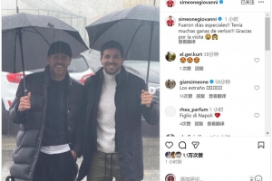 西蒙尼看望自己的兒子吉奧瓦尼·西蒙尼,后者社媒曬出父子合照,配文:“這真是無比特別的時(shí)光,我一直都渴望與你們相見,感謝你們的到訪?!?/p>