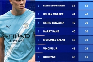1、哈蘭德 50場52球