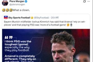 體育資訊11月28日訊 英國(guó)主持人、著名阿森納球迷皮爾斯·摩根在社交媒體炮轟基米希,直言其是“小丑”。
