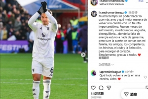 利馬寫道:“很久沒有做我最熱愛的事情了,最好的回歸方式就是以一場至關(guān)重要的勝利重返球場。”