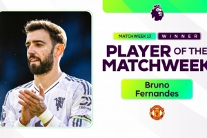 體育資訊12月2日訊 英超官方消息,曼聯(lián)中場B費當(dāng)選第13輪英超的最佳球員。