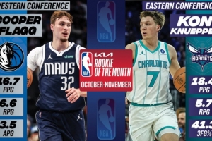 體育資訊12月3日訊 今日NBA官方公布了10-11月東西部月最佳新秀,狀元弗拉格與黃蜂4號(hào)秀克尼佩爾分別當(dāng)選。