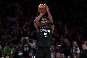 上半場(chǎng)比賽,愛德華茲的發(fā)揮一般,他出戰(zhàn)18分鐘,11中4,三分5中1,罰球2中1,得到10分2籃板,出現(xiàn)2次失誤。