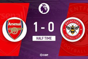 上半場補(bǔ)時(shí)3分鐘,阿森納1-0布倫特福德。