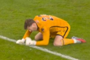 英超第14輪,利物浦1-1戰(zhàn)平桑德蘭。比賽第94分鐘,桑德蘭錯(cuò)失絕殺機(jī)會(huì),桑德蘭門將羅夫斯大腳制造單刀機(jī)會(huì),伊西多過掉阿利松后打門被小基耶薩門線解圍,羅夫斯本來高舉雙手準(zhǔn)備慶祝,最后只能跪地怒捶草皮。