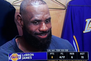 體育資訊12月5日訊 NBA常規(guī)賽,湖人123-120猛龍。賽后詹姆斯接受了采訪。