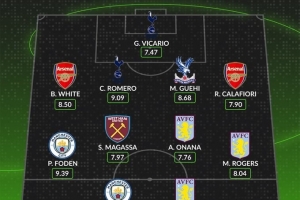 中場: 福登(9.39分,曼城)、馬加薩(7.97分,西漢姆聯(lián))、阿馬杜·奧納納(7.76分,維拉)、摩根·羅杰斯(8.04分,維拉)