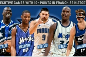 連續(xù)10+場數(shù)榜:奧尼爾147、麥迪116、武切維奇92、奧尼爾80、小瓦格納77、班凱羅73