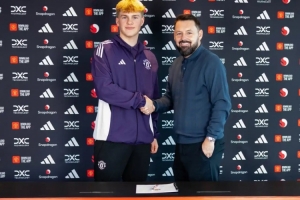 據曼徹斯特晚報消息,哈迪與曼聯(lián)簽署的是獎學金合同,并在卡靈頓訓練基地與青訓運營主管史蒂夫·海厄姆合影。