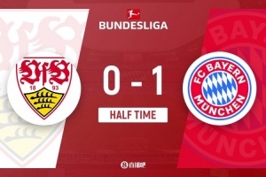 傷停補時8分鐘。上半場比賽結(jié)束,拜仁1-0斯圖加特。