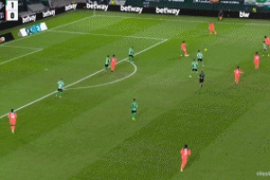 兩分鐘后巴德吉助攻,費蘭凌空側(cè)鉤破門完成雙響,巴薩反超比分,2-1貝蒂斯!