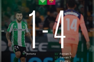 體育資訊12月7日訊 本輪西甲焦點戰(zhàn),巴薩上半場4-1反超貝蒂斯,數(shù)據(jù)統(tǒng)計顯示西甲聯(lián)賽歷史僅有4支客隊在皇家貝蒂斯主場上半場進球數(shù)達到4+: