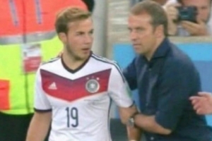 在2014年世界杯,弗里克擔(dān)任德國(guó)國(guó)家隊(duì)助教,而格策是德國(guó)國(guó)家隊(duì)的球員。2014年7月13日的世界杯決賽,德國(guó)對(duì)陣阿根廷,比賽第88分鐘,比分還是0-0平,德國(guó)主帥勒夫和助教弗里克討論之后,決定用格策換下中鋒克洛澤,并讓格策踢偽9號(hào)中鋒。