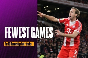 據(jù)Opta統(tǒng)計(jì),凱恩出戰(zhàn)76場德甲比賽,10次上演帽子戲法,他是德甲歷史10次戴帽所用場次最少的球員,只有4名球員德甲戴帽次數(shù)更多,他們是蓋德·穆勒、萊萬、馬里奧·戈麥斯和克勞斯·費(fèi)舍爾。