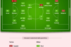 體育資訊12月9日訊 在米蘭客場3-2逆轉(zhuǎn)都靈的比賽后,《米蘭體育報》為米蘭本場比賽的出場球員進行了評分。