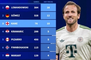 體育資訊12月9日訊 德國轉(zhuǎn)會市場盤點了21世紀(jì)德甲球員帽子戲法次數(shù)排名,凱恩10次已經(jīng)來到第三位。