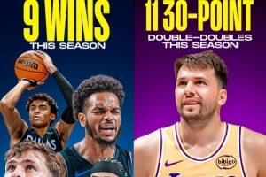 看看這組數(shù)據(jù):盧卡本賽季已豪取11次30+得分兩雙。