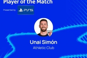 本場(chǎng)比賽畢爾巴鄂競(jìng)技門(mén)將烏奈·西蒙發(fā)揮出色,全場(chǎng)貢獻(xiàn)4次撲救,幫助球隊(duì)完成零封,賽后當(dāng)選歐冠官方評(píng)選出的本場(chǎng)最佳球員。