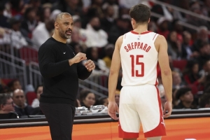 這個(gè)球能打到最后,我覺著當(dāng)然快船也拼了,但是跟火箭對這場比賽沒有什么針對性也有很大關(guān)系,是吧?你明顯這球不上謝潑德火箭早贏了,第三節(jié)那時(shí)段上霍勒迪好很多,好像就是說領(lǐng)先一點(diǎn)之后他就老得把謝潑德?lián)Q上去,然后讓謝潑德練一練,是吧?他就是常規(guī)賽,常規(guī)賽其實(shí)沒有那么強(qiáng)的 match up 的對位的針對性。烏