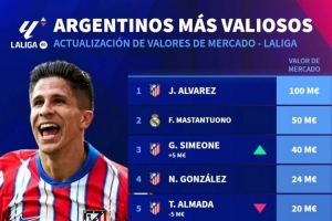 西甲阿根廷球員身價(jià):小蜘蛛1億歐最高,馬斯坦托諾5000萬(wàn)歐次席