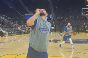 本場復(fù)出的庫里進行了賽前熱身,熱身時,他上腳了阿迪達斯球鞋,愛德華茲一代。